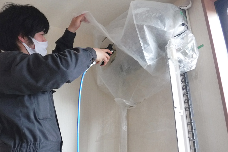 エアコン清掃だけの特別な機材を使用してエアコンを一から分解して洗浄を行います。