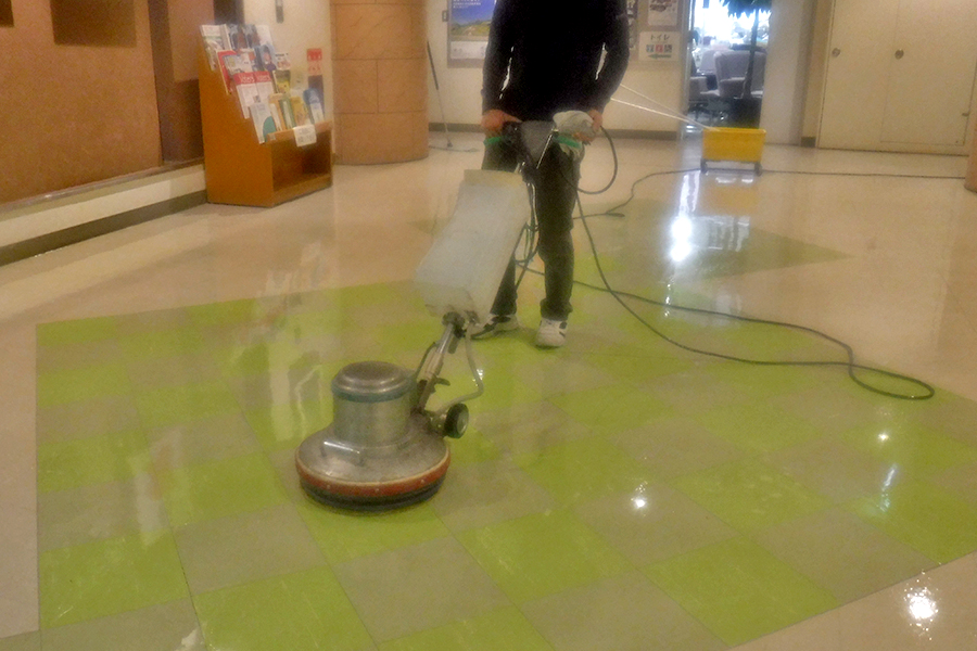 清掃箇所の材質に合わせて、ポリッシャーや高圧洗浄を使って、状況に応じて適切な清掃方法で行っています。